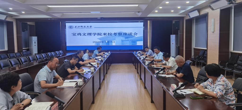 7月3日,副校长冯飞龙一行前往天水师范大学进行调研。会前,天水师范大学党委书记刘振奎会见了冯飞龙,副校长王旭林出席调研会议并致辞。