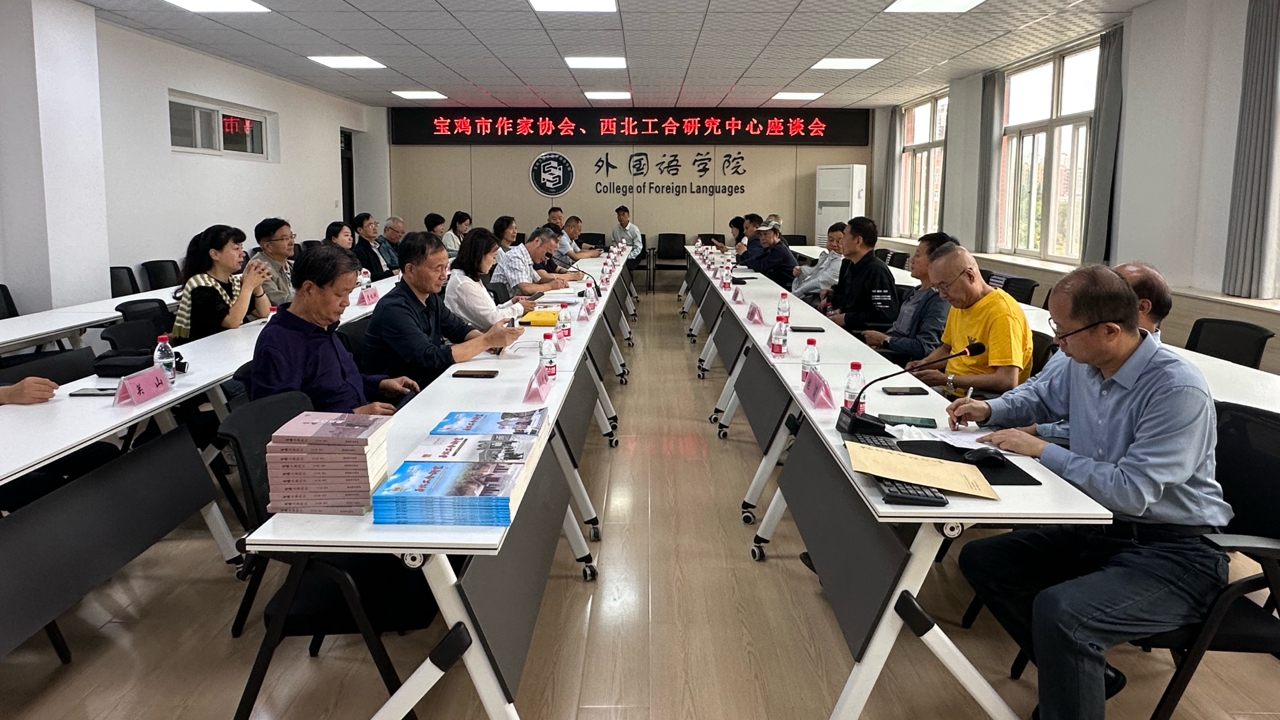 参观结束后,双方在立心楼426会议室举行座谈交流。外国语学院党委书记张小龙对李广汉一行表示欢迎,并介绍了学院的基本情况;外国语学院院长、西北工合研究中心主任李伟教授介绍了中心成立四年来的发展情况和未来思路。11位专家结合工合历史研究与当代实践,围绕工合精神的核心内涵、历史意义深入研讨,并重点聚焦“努力干,一起干”精神在当代社会的阐释与传承路径交换观点。大家普遍认为:工合精神蕴含的协作、实干、担当品质,既是历史馈赠宝鸡的精神财富,更是当下推动城市发展、赋能文化创作的重要动力。