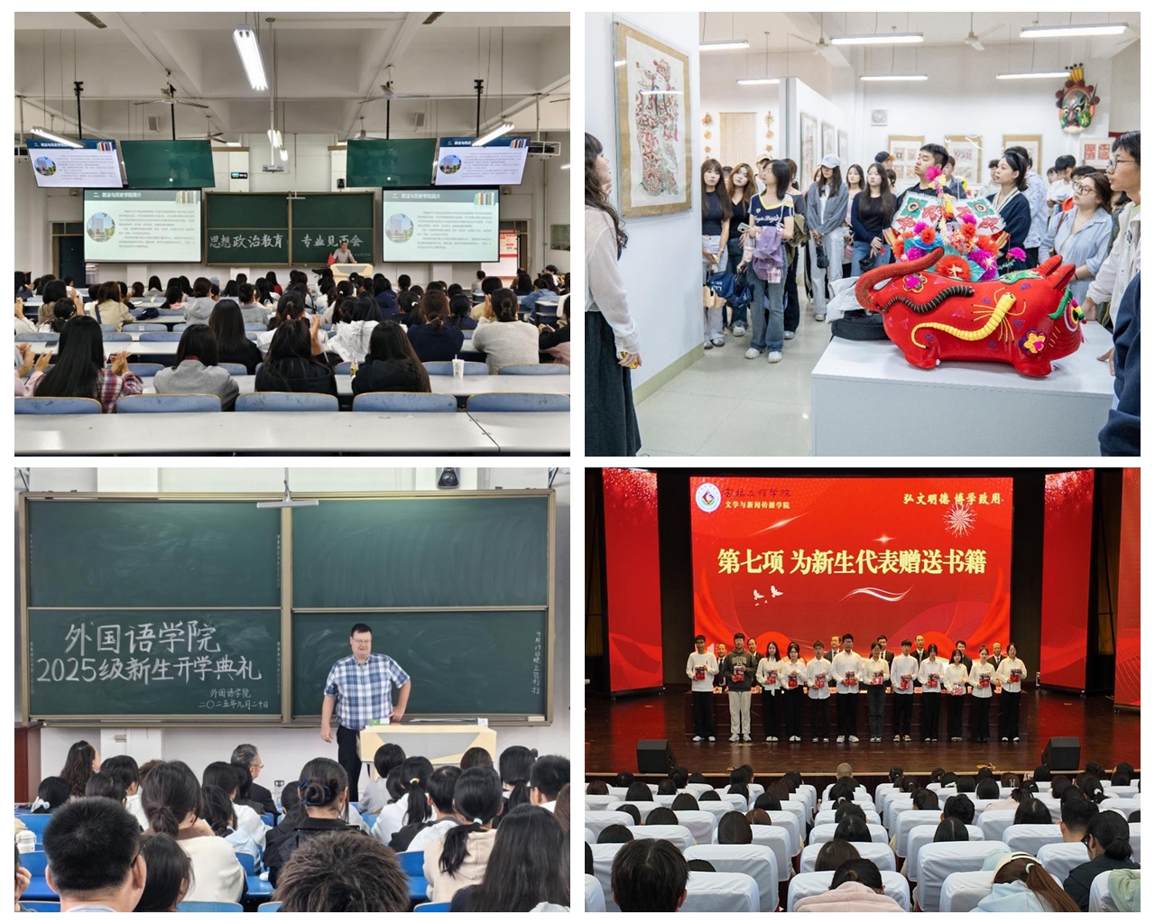 政法与历史学院分专业召开新生见面会,专任教师就专业培养方案与课程体系架构进行了详细讲解,增强了新生的专业认同感和学习动力。教育学院党政领导为新生讲授“大学第一课”,勉励新生树立远大理想、锤炼品德修养、积极投身实践,努力成为担当民族复兴大任的时代新人。文学与新闻传播学院党政领导、教授为新生代表赠送了《习近平与大学生朋友们》第二卷和专业发展丛书,鼓励新生勤学善思、乐知好学,积极传播文理声音、讲好文理故事。外国语学院组织专任教师向新生全面介绍学科发展前沿、就业发展前景与方向等,开拓了新生的学科学术视野,明确了未来发展方向。美术与设计学院组织新生参观了学院民俗展厅,领略传统工艺的独特魅力,引导新生坚定文化自信、勇攀文艺高峰,以奋斗之笔绘就青春画卷。数学与信息科学学院召开新生辅导员见面会,聚焦新生适应需求,详细介绍学习与生活中的各项注意事项,鼓励新生主动探索、创新实践、珍惜时光。