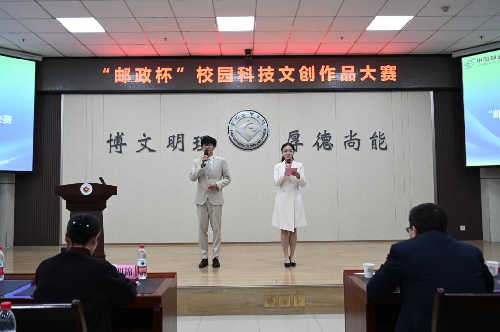 10月21日下午,“智汇邮驿,校邮联创”——“邮政杯”校园科技文创作品大赛决赛在高新校区甘棠厅举行。副校长凡明锦、宝鸡市邮政管理局局长侯金利、宝鸡市邮政分公司副总经理苏志强出席活动。