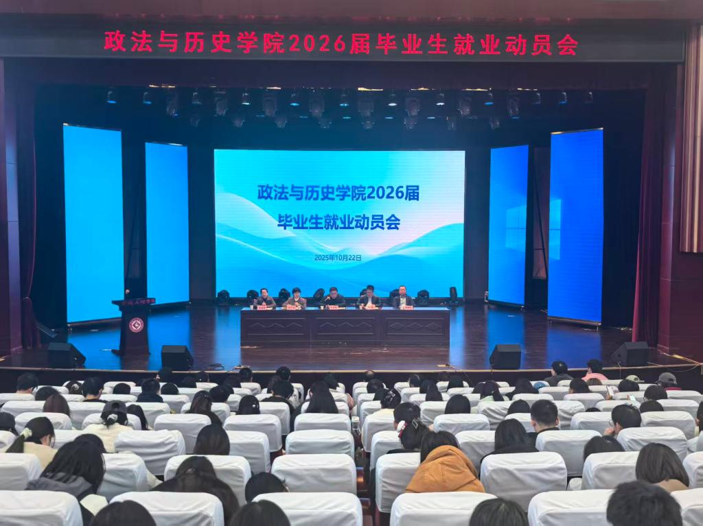 10月22日下午,政法与历史学院在高新校区博文楼报告厅召开2026届毕业生就业动员会。学院党政领导、系主任、毕业班研究生导师、班主任、辅导员及2026届全体毕业生参加会议。学院党委书记李建钢主持会议。
