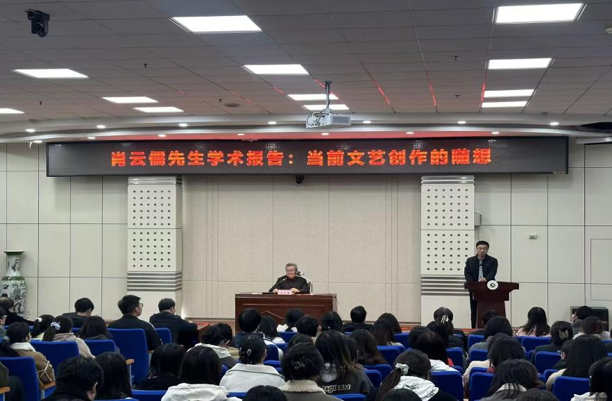 11月11日晚,著名文化学者、文艺评论家肖云儒教授应邀在高新校区木铎厅为万象城师生作题为“当前文艺创作的随想”的学术报告。报告会由文学与新闻传播学院院长孟改正主持。