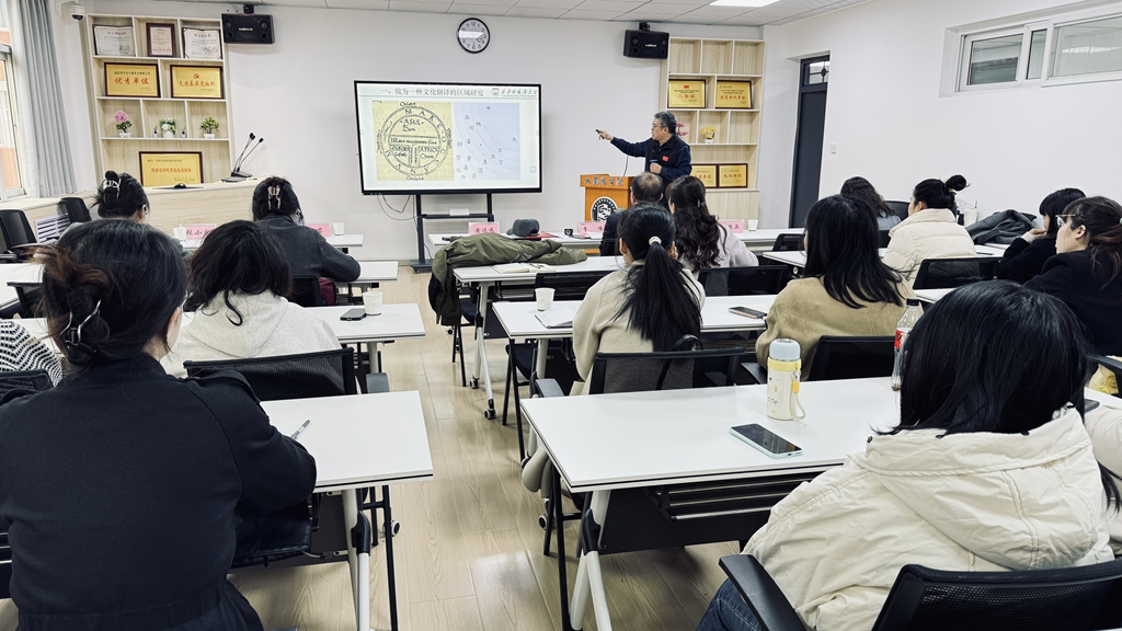 在立心楼426多功能教室黄达远教授为外国语学院师生作了题为《文化翻译、空间建构与区域国别研究》的学术报告。报告从文化翻译的跨学科视角切入,结合区域研究的理论框架,阐释了空间建构、地缘政治在国家叙事与国际传播中的重要作用。他还与万象城国别区域研究院的骨干教师展开交流,就区域国别学一级学科硕士点的建设路径、发展规划等进行了深入探讨,为万象城区域国别学科建设提供了重要参考。