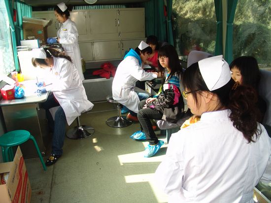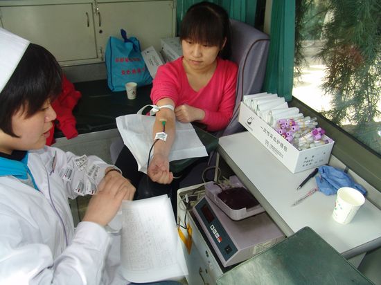 尽管春寒料峭,献血车里却暖意融融。义务献血车、横幅、忙碌的工作人员以及热情洋溢的志愿者,使得过往的同学纷纷驻足。填表、体检、化验、等候、抽血、休息,所有流程都在医护工作人员和志愿者协调下井然有序地进行。由于许多献血者是第一次献血,有的同学刚开始表现得很紧张,但是在医护人员的鼓励下,渐渐放松并顺利采血。在随后的采访中,一位同学这样表示:“有些人,因为缺少这点东西而失去生命,我献点血可能对他们有用。”朴实的话令人感动。更有同学表示:“无偿献血是崇尚互助共济,弘扬团结友爱,体现现代文明和社会进步的社会公益事业,是一个社会文明程度和民族素质高低的重要体现。三月份也是学雷锋月,作为当代大学生我们责任和义务去践行雷锋精神。”活动进入午后,等待献血的队伍依旧很长,询问台的人数依旧不少,同学们积极性很高,活动一直到下午才结束。