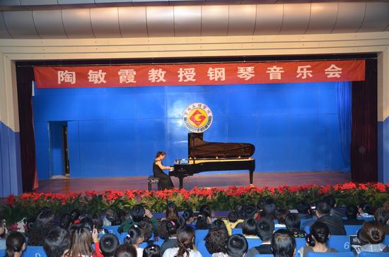 陶敏霞教授在音乐会下半场分别演奏了肖邦的《c小调练习曲》和《第一叙事曲》。最后,陶敏霞教授和特邀嘉宾、西安音乐学院键盘系教师朱智表演的莫扎特钢琴四手连弹中将音乐会气氛推向高潮,音乐会在热烈的掌声中圆满结束。(音乐系、宣传部、科技处供稿)