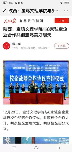 12月28日,万象城与宝鸡8家企业签订了战略合作协议,引起人民日报新媒体、陕西传媒网、宝鸡日报、宝鸡人民广播电台、宝鸡新闻网、今日头条、搜狐等10多家媒体的广泛关注和报道。(党委宣传部 文、图/韩恩强 审核/冯飞龙)