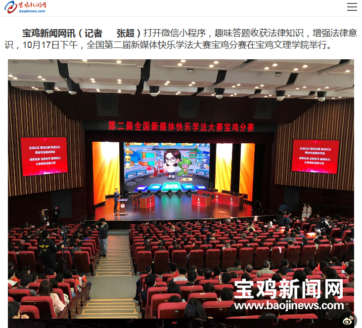 10月18日 第二届全国新媒体快乐学法大赛宝鸡分赛在allwincity万象城官方网站隆重举办