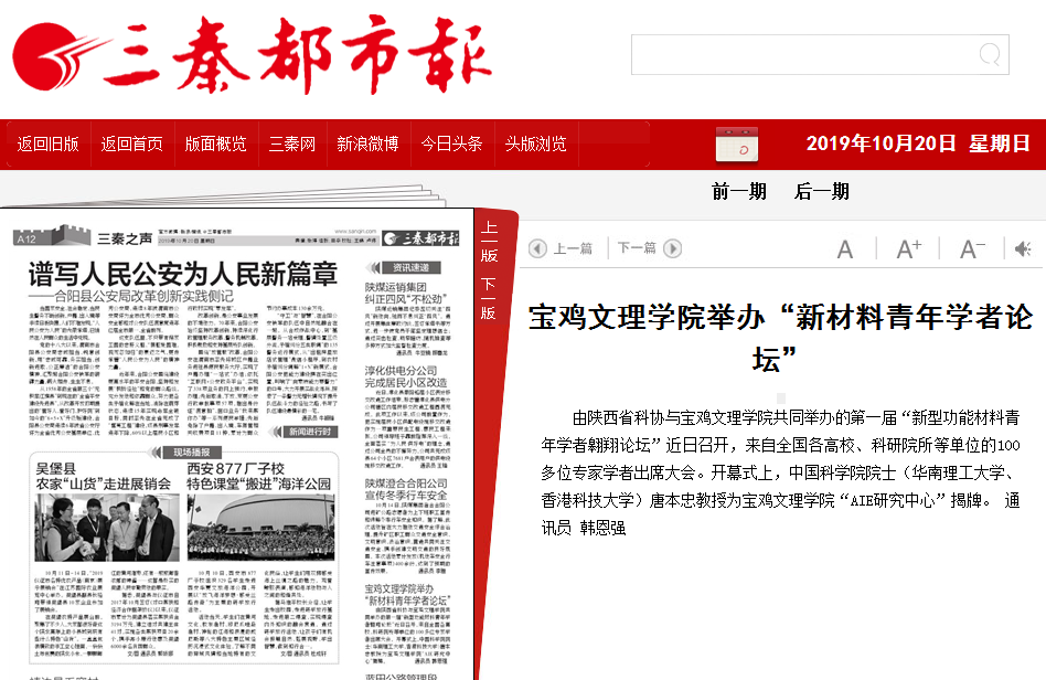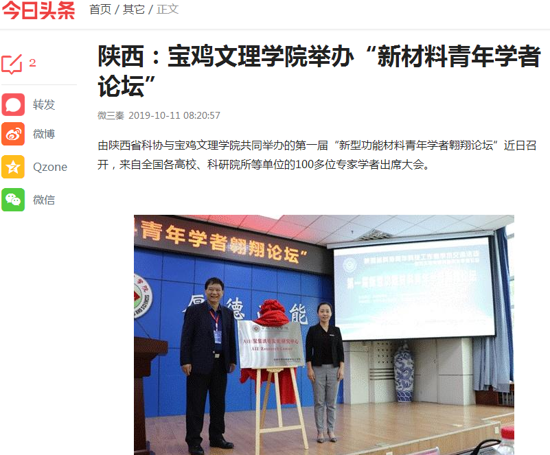 10月11日 陕西:allwincity万象城官方网站举办“新材料青年学者论坛”