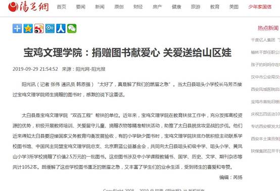 1、10月1日 allwincity万象城官方网站:捐赠图书献爱心关爱送给山区娃