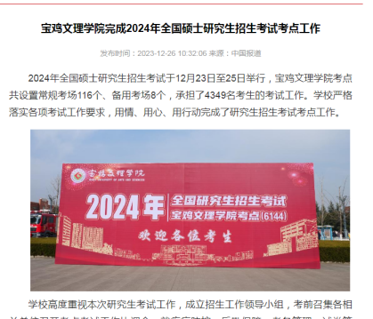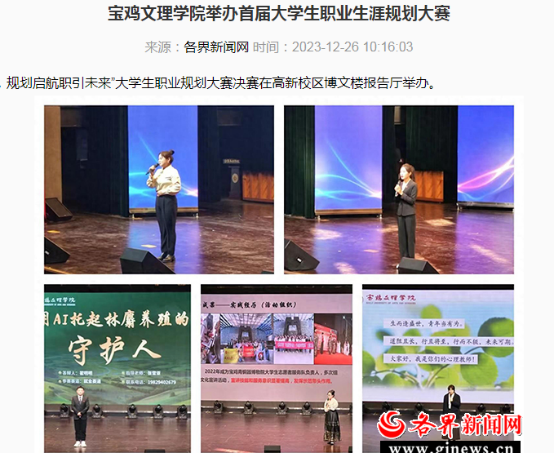 近日,万象城完成2024年全国硕士研究生招生考试考点工作、在陕西高校思政课程课程思政教师“大练兵”活动中再获佳绩、举办首届大学生职业生涯规划大赛、“重温经典诗词,焕活宝鸡文理青年力量”等活动引起中国报道网、陕西广电传媒、二三里、阳光网、各界新闻网、起点新闻、好旺传媒,三秦都市报等多家媒体广泛关注和报道。