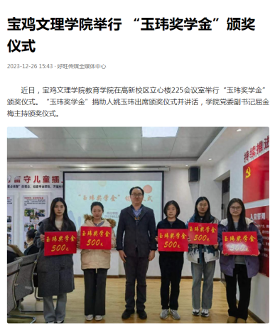 五、举行“玉玮奖学金”颁奖仪式