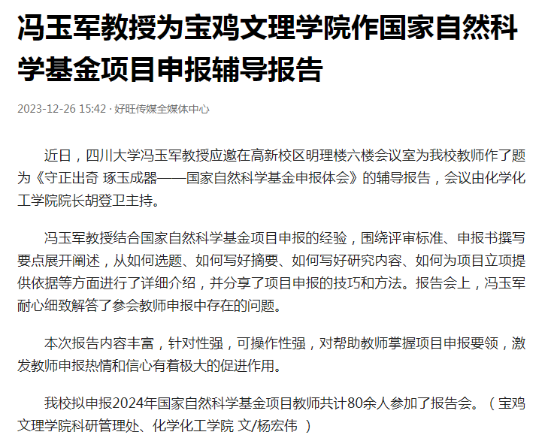 七、冯玉军教授作国家自然科学基金项目申报辅导报告