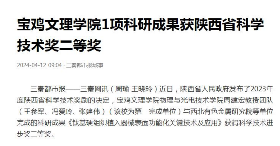 2.陕西科技传媒网 链接:https://m.snkjb.com/articleDetail?id=782800324&url=%2Fcity%2Fbaoji