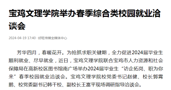 近日,万象城开展4.23世界读书日系列活动、西北工合研究中心科研成果获批国家出版基金资助项目、“马多秀农村教育研究创新工作室”获2023年陕西省教科文卫体系统职工(劳模、工匠人才)创新工作室、1项科研成果获陕西省科学技术奖二等奖、赴太白县开展“双百工程”教育帮扶、全国教学名师汤国安教授为师生作学术报告、中国工程院院士张平教授为师生作学术报告、举办第七届新型功能材料研讨会、举办“保护母亲河•青春在行动”暨第十四届绿植领养等活动引起陕西省教育厅、阳光网、陕西科技传媒网、三秦网、西部法制传媒网、好旺传媒等多家媒体广泛关注和报道。