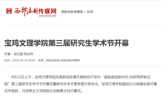 1.西部法制报、西部法制传媒网 链接:https://www.xbfzb.com/2024-04/16/content_10655241.html