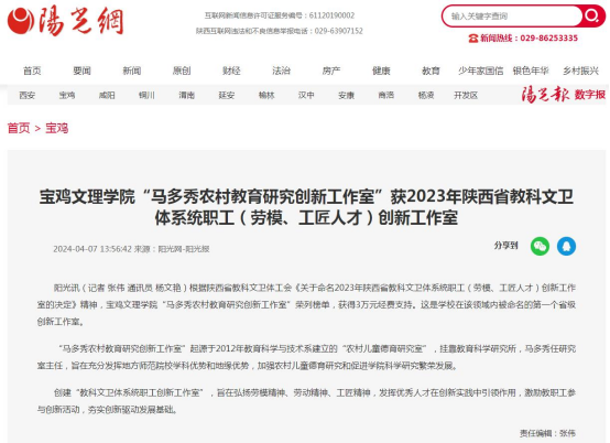 三、“马多秀农村教育研究创新工作室”获2023年陕西省教科文卫体系统职工(劳模、工匠人才)创新工作室