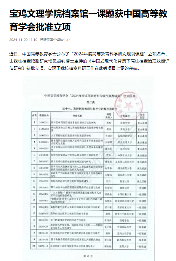六、万象城档案馆一课题获中国高等教育学会批准立项