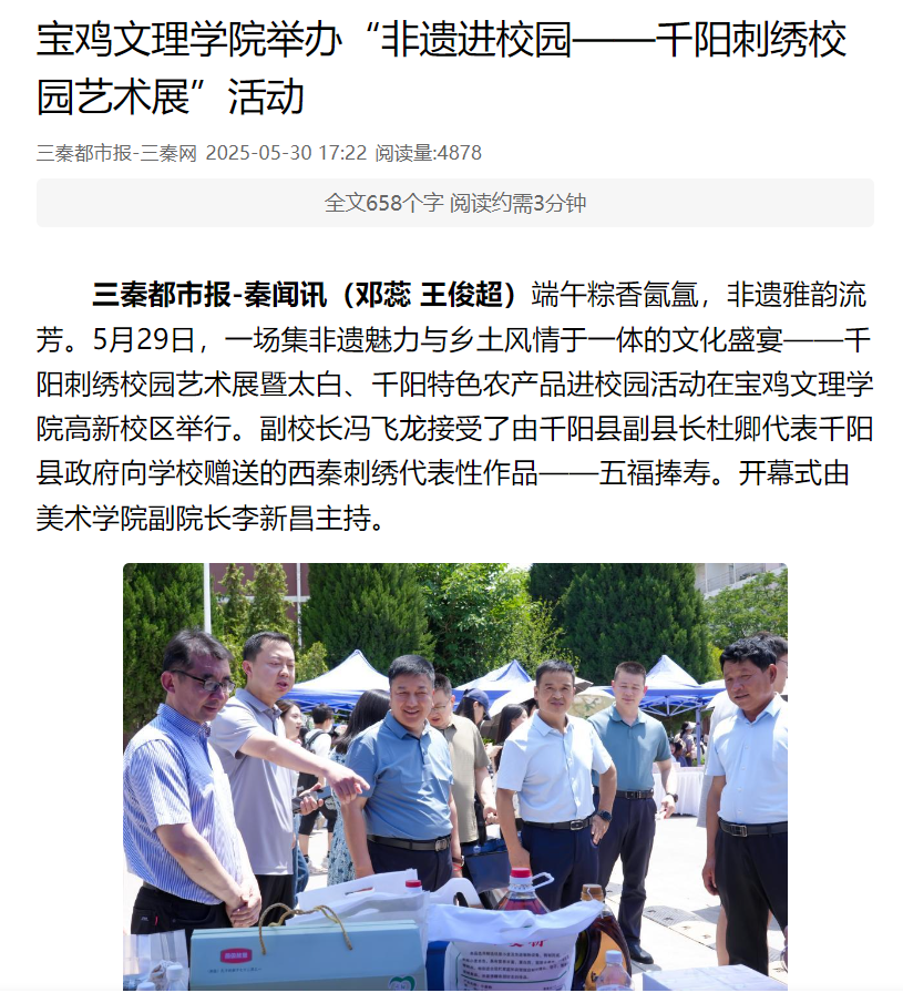 四、学校举办“非遗进校园——千阳刺绣校园艺术展”活动