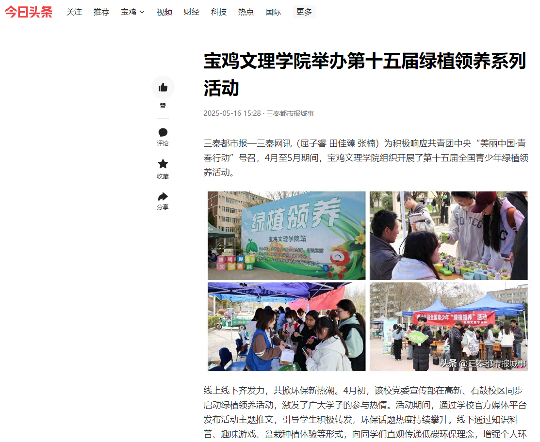 2.今日头条-三秦都市报城事 链接:https://www.toutiao.com/article/7504941569720517129/?share_did=MS4wLjACAAAA89uJuFt8i0BPb_ScOfrmbwKMY1iXcwICjyNnCv8mgTk&upstream_biz=client_share&app=news_article×tamp=1747380607&share_uid=MS4wLjABAAAAMty6bCBWWKqe9dj8i2RFPpDKSq2yPtgdeAOqSoPcVGBBCsPEW_4vk1WFigUO1wlf&category_new=profile_all&share_token=7eff4021-5b28-4c5e-9b9b-a67a2d699c90&source=m_redirect