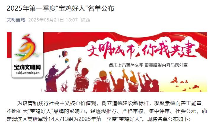 三、学校两名在校生和一名校友荣膺2025年第一季度“宝鸡好人”