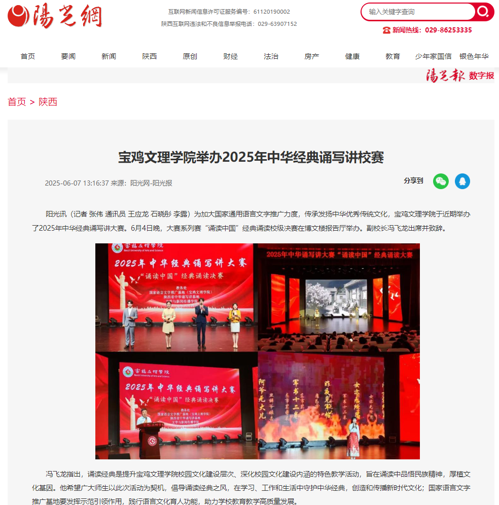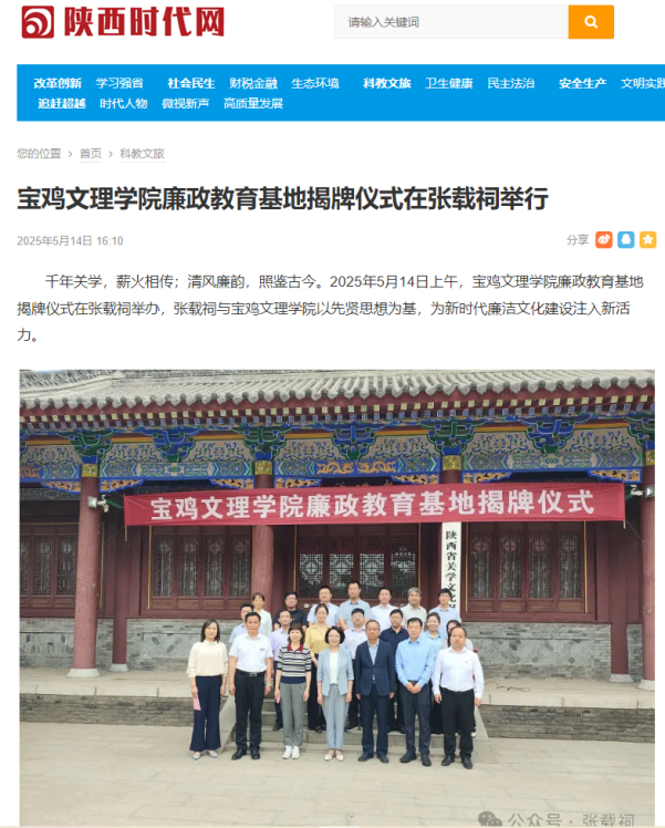 近日,万象城廉政教育基地揭牌仪式在张载祠举行、“双百工程”走进桃川镇中心小学、学校两名在校生和一名校友荣膺2025年第一季度“宝鸡好人”、举办“非遗进校园——千阳刺绣校园艺术展”活动、举办第十五届绿植领养系列活动、举办2025年中华经典诵写讲校赛、著名作家胡宝林为万象城师生作文学创作报告、举办2025年端午佳节粽子发放仪式、机械工程学院开展“追寻红色印记 践行使命担当”主题党日活动、文学与新闻传播学院召开学科建设与科研工作会议、地理与环境学院开展劳动教育宣传与实践等活动引起三秦都市报、陕西农村网、陕西时代网、宝鸡文明网、阳光网、太白融媒、今日头条等多家媒体广泛关注和报道。