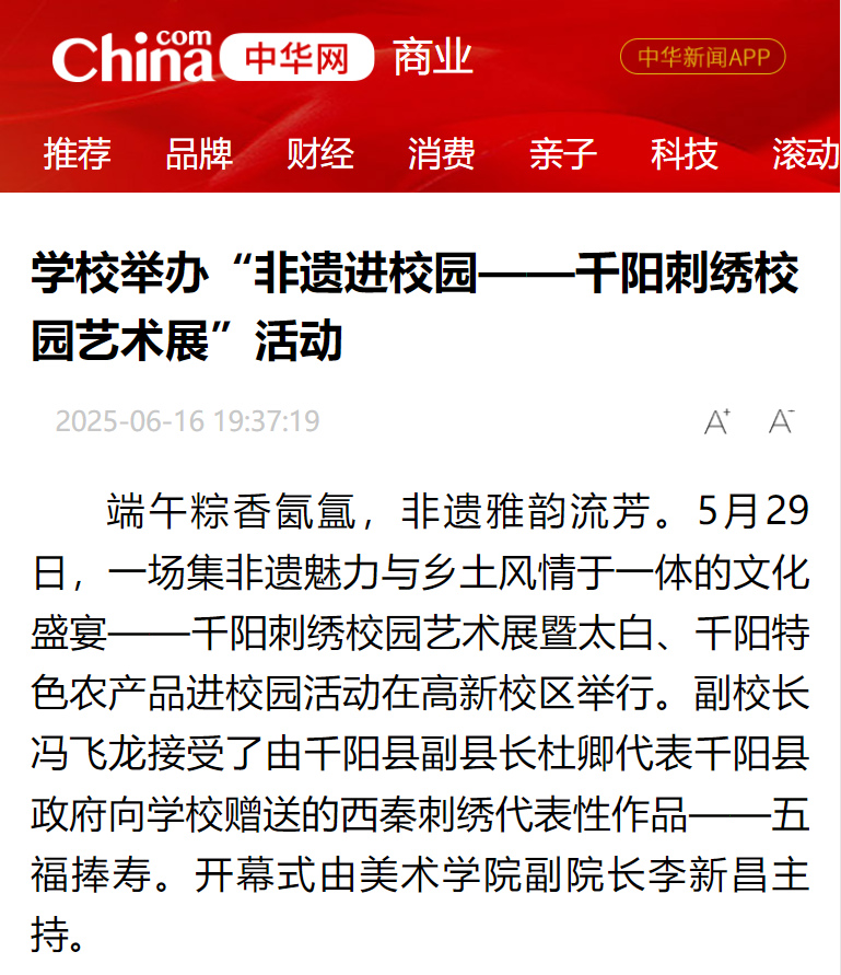 六、学校举办“非遗进校园——千阳刺绣校园艺术展”活动