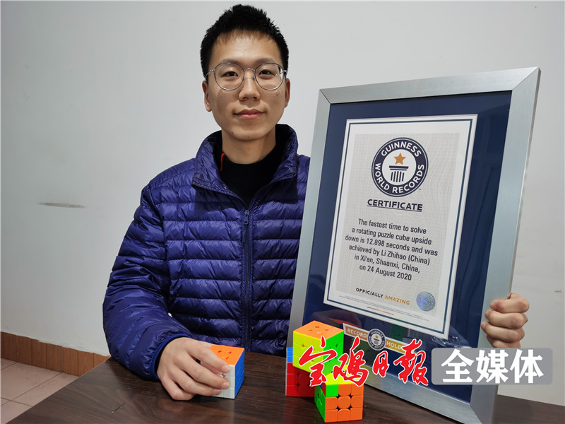 李志淏同学这种“自找苦吃”,不断自我激励,为了心中的梦想而不畏艰难困苦的品质正是广大学子学习的榜样。今后,他将继续坚持自己的梦想之路,精益求精、不断超越,同时也会将魔方知识传授给更多的人。他的事迹已被华商网、宝鸡电视台、宝鸡日报、宝鸡新闻网等多家媒体报道。(计算机学院 文/张雯 图片来源/宝鸡日报 审核/张炳武)