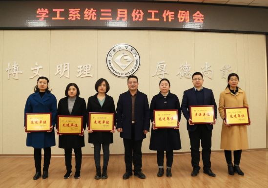 会上,学校对获得2020年“学生工作先进单位”的文学与新闻传播学院、机械工程学院、外国语学院、物理与光电技术学院、美术学院、经济管理学院6个二级学院进行了表彰。