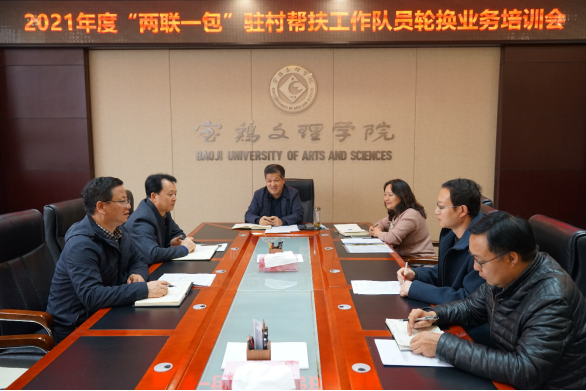 一是举办业务培训,提升驻村队员任职能力。3月9日,学校在高新校区图书馆806会议室召开了2021年度“两联一包”驻村帮扶工作队员轮换暨业务培训会,副校长王富平出席会议,会议由党政办公室主任(扶贫办公室主任)王永君主持。会上,与会人员学习了习近平总书记2月25日在全国脱贫攻坚总结表彰大会上的讲话,听取了学校2020年“两联一包”工作完成情况汇报,明确了驻村帮扶工作的主要职责。组织部和人事处负责人分别就加强驻村干部管理和落实驻村人员待遇进行了说明,2021年驻村帮扶干部李建鹏作了表态发言。