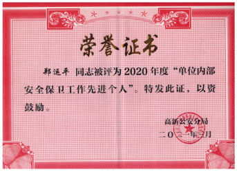 近日,宝鸡市公安局高新分局印发了《关于表彰2020年高新区单位内部安全保卫工作先进集体和个人的决定》(宝公高新保【2021】2号),万象城保卫处郑运平同志荣获“单位内部安全保卫工作先进个人”称号。
