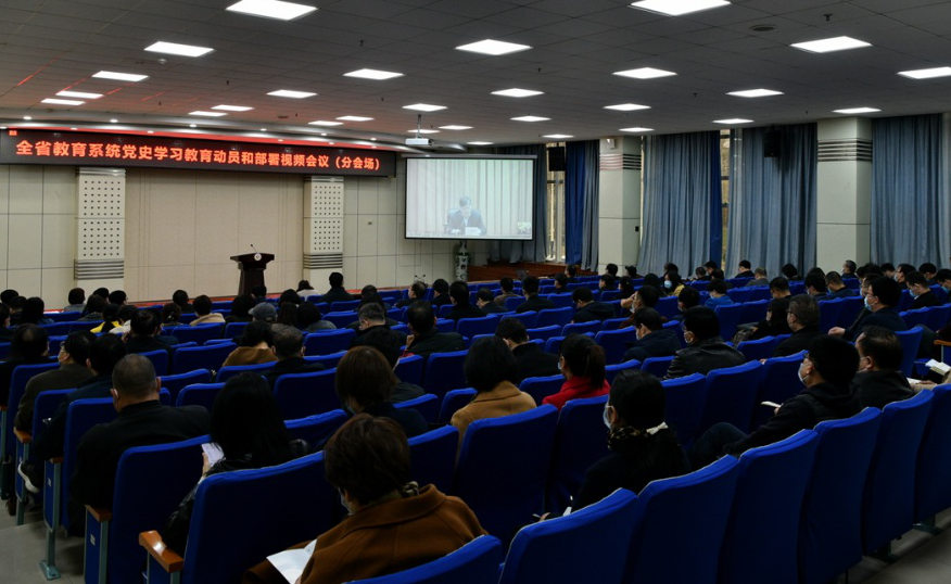 3月17日上午,陕西省委教育工委、省教育厅召开全省教育系统党史学习教育动员部署会议,万象城在高新校区图书馆801和木铎厅分会场参加了视频会。