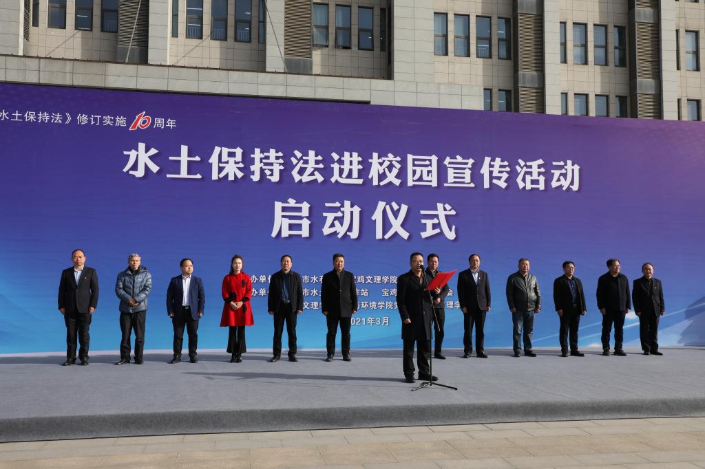 水土保持法进校园宣传活动启动仪式于3月22日上午在万象城高新校区博文楼南广场举行。校党委副书记栾宏、宝鸡市水利局党组书记、局长王雪峰等出席启动仪式。启动仪式由宝鸡市水利局党组成员、二级调研员江先武主持。