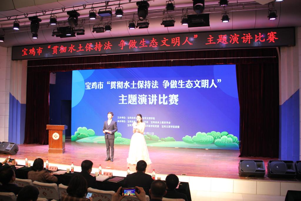 当日下午,宝鸡市“贯彻水土保持法 争做生态文明人”主题演讲比赛在高新校区音乐厅举行。比赛中,万象城20名学生或从宝鸡实际出发,分析水土保持的严峻形势;或从自己的所见所闻出发,发出“保护环境,人人有责”倡议;或是自我加压,刻苦钻研,练就本领,以实际行动为生态文明建设贡献青春力量。同学们引经据典,谈古论今,以优美的语言艺术、娴熟的演讲技巧、良好的舞台形象,给评委和观众留下了深刻的印象。整场演讲比赛始终以践行习近平总书记提出的“绿水青山,就是金山银山”为核心,展示了大学生对水土保持的理解和认识,充分展现了大学生的生态文明观,为生态文明建设的宣传增添了活力。赛后,本次演讲赛评委、文学与新闻传播学院赵玲教授作了精彩点评。
