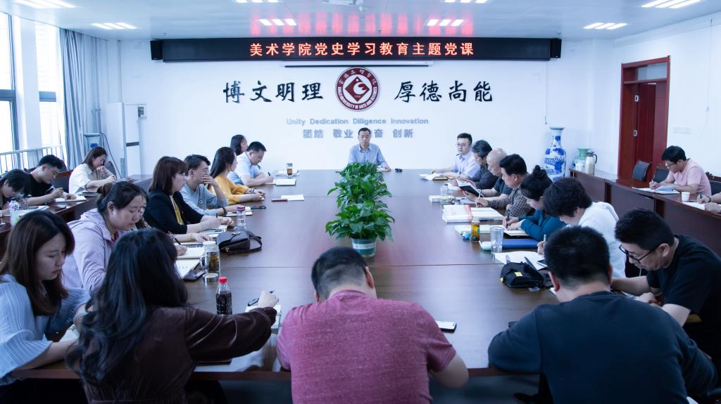 5月19日下午,副校长杨子元在高新校区博文楼1301会议室以《学党史 强信念 做“四有”好教师》为题,为美术学院全体教师党员讲了主题党课,党课由美术学院党委书记田富平主持。