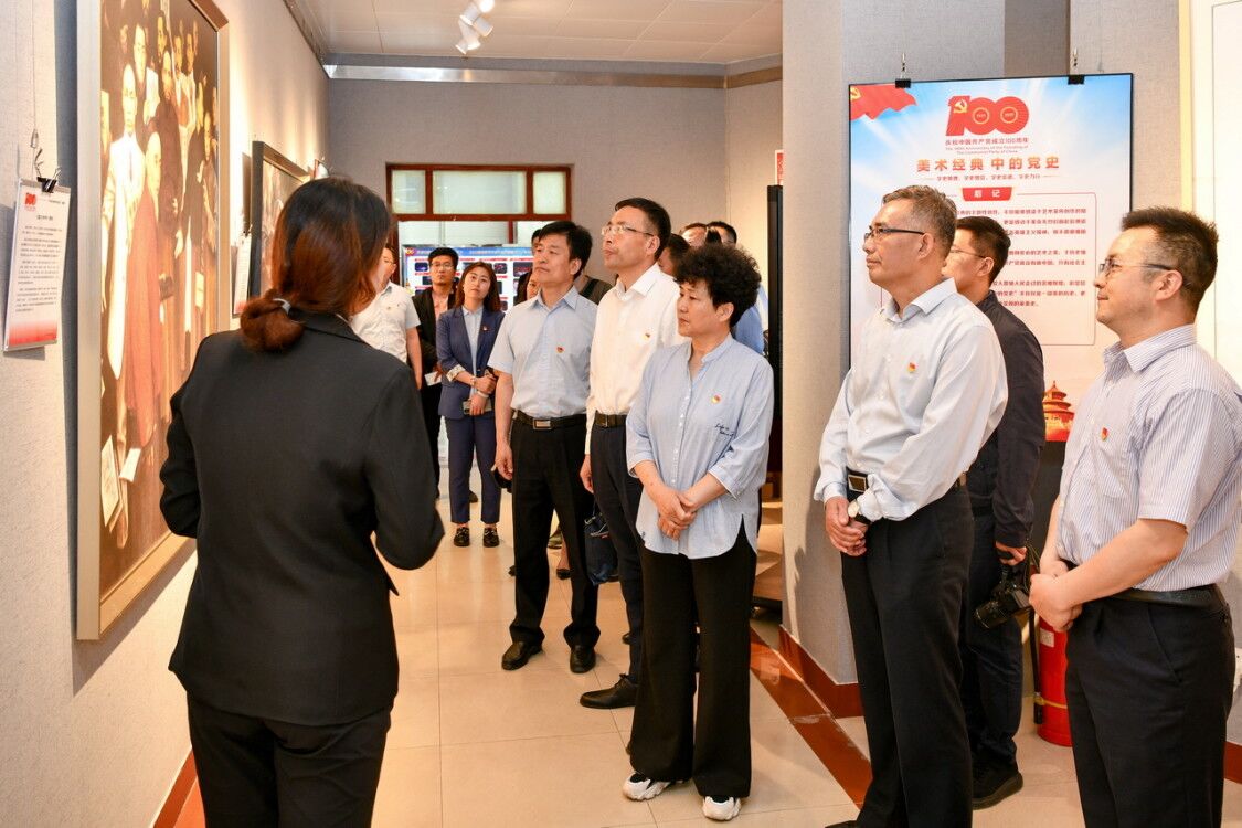 指导组一行参观指导美术学院美术经典中的党史画展