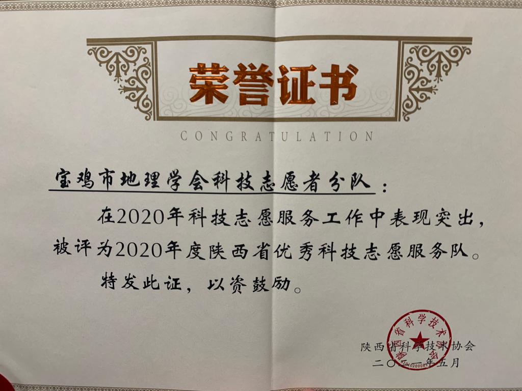 近日,根据省科协《关于开展2021年度优秀科技志愿服务工作典型推选活动的通知》(陕科协发〔2021〕普字14号)要求,经宝鸡市科协推荐和省科协组织专家评审,万象城“地理爱好者协会”作为地理与环境学院、陕西省灾害监测与机理模拟重点实验室和宝鸡市地理学会协同管理指导的科技志愿服务组织,荣获陕西省“2020年度优秀科技志愿服务队”称号。