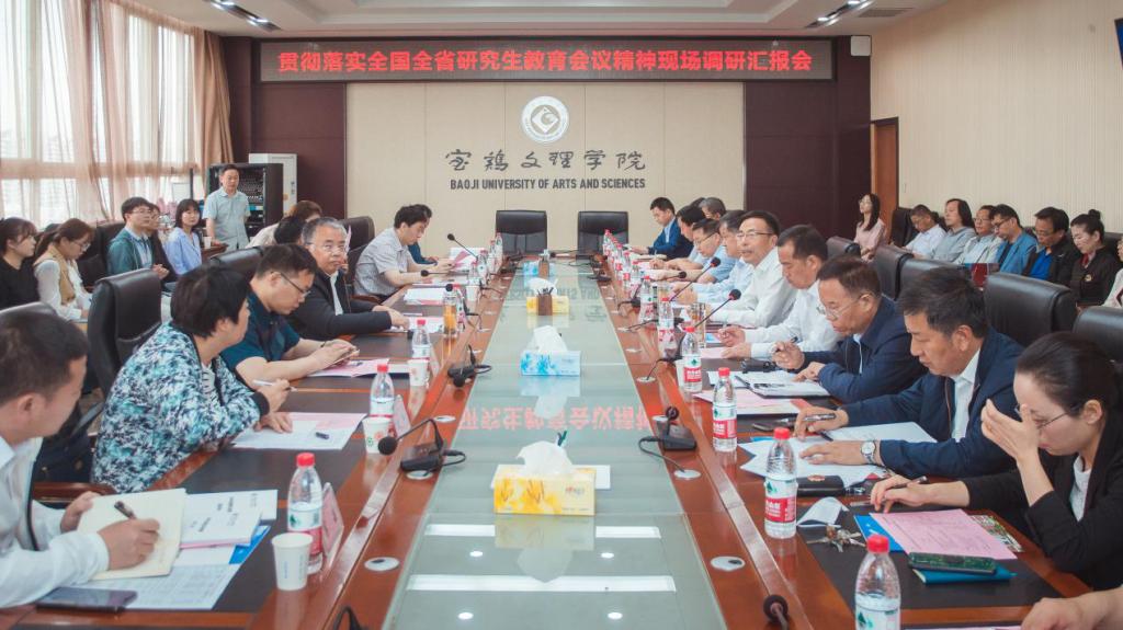 5月25日,陕西省政府学位委员会秘书长袁宁,省教育厅贯彻落实全国全省研究生教育会议精神调研第六专家组组长、陕西科技大学副校长王海燕,副组长、西北政法大学研究生院院长孙昊亮一行8人来万象城调研全国全省研究生教育会议精神贯彻落实情况。校党委书记赵健、校长郭霄鹏,副校长杨子元、王富平参加调研活动。