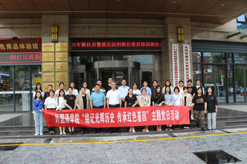 6月18日下午,外国语学院组织师生党员赴西建非公党建学院和宝鸡市长乐塬抗战工业遗址公园开展“铭记光辉历史 传承红色基因”主题党日活动,校党委书记赵健参加了此次主题党日活动。