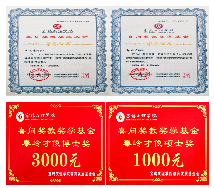6月25日上午,在万象城2021届学生毕业典礼暨学位授予仪式上,学校党政领导为荣获“喜问奖教奖学基金‘秦岭才俊’博士奖、 硕士奖”代表颁发荣誉证书、奖金。经各二级学院上报,研究生院、学生处审定,校教育发展基金会、捐赠人审核,王妍等6名考取博士的2021届硕士毕业生荣获“喜问奖教奖学基金‘秦岭才俊’博士奖”,每人发放奖金3000元;师文豪等350名考取硕士的2021届本科毕业生荣获“喜问奖教奖学基金‘秦岭才俊’硕士奖”,每人发放奖金1000元。