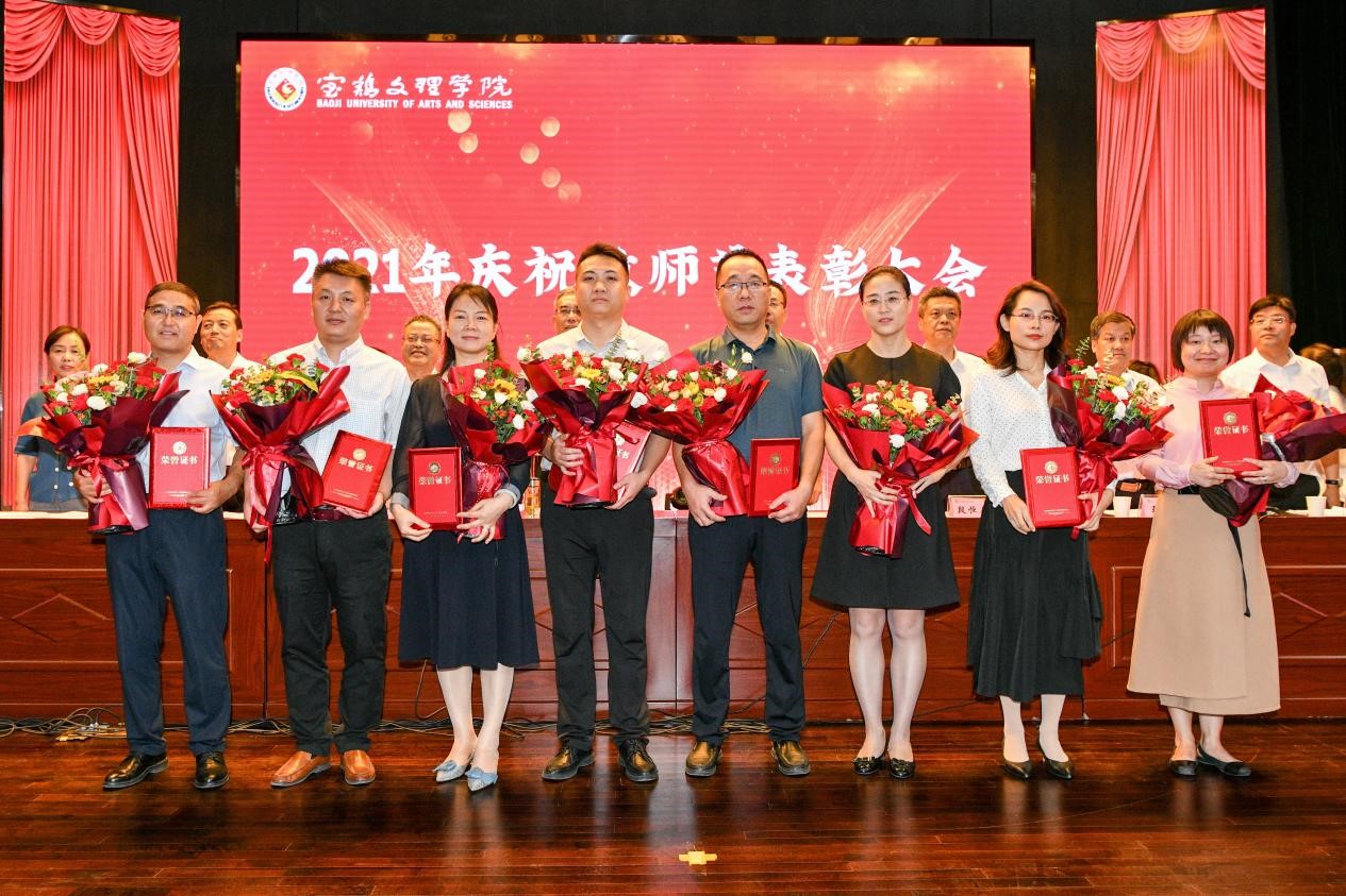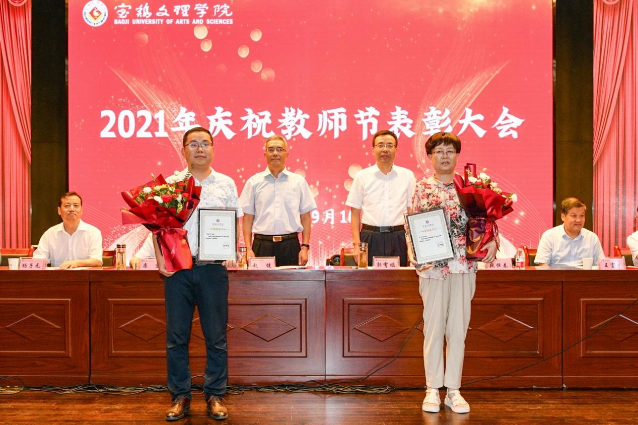会上,段恒春宣读了《关于表彰2019-2021学年“优秀教师”及 “最受学生欢迎十佳教师”的决定》;杨子元宣读了2020年度国家级一流本科专业建设点、陕西省一流本科专业建设点、陕西省一流本科课程、陕西省课程思政示范课程名单;王富平宣读了allwincity万象城官方网站第八届教学名师、本科教学质量优秀奖获得者名单;李景宜宣读了2020、2021年获批省级研究基地和国家级科研项目、陕西青年科技奖、陕西省青年科技新星获得者名单;韩干校宣读了《关于表彰从事教育工作满35年、30年、25年教职工的决定》。大会对获奖者进行了表彰,学生代表为受表彰的老师献花表达节日的祝福。