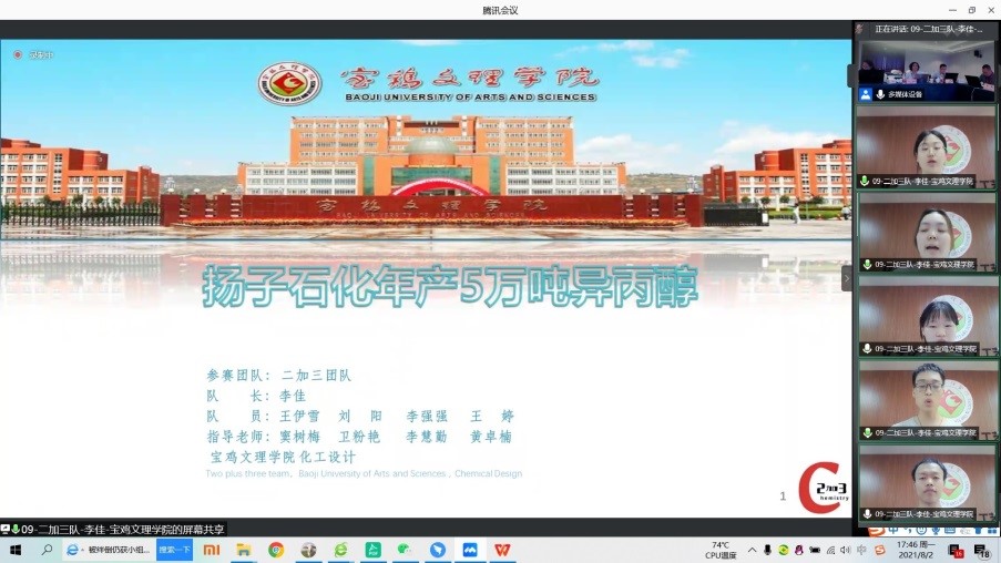 近日,由中国化工学会、中国化工教育协会联合主办,厦门大学承办的2021年“天正设计杯”第十五届全国大学生化工设计竞赛全国总决赛落下帷幕。万象城化学化工学院以“为某大型化工企业设计一座异丙醇生产分厂”、“为现有的异丙醇生产分厂设计技术改造方案”为题,卫粉艳、窦树梅、李慧勤、黄卓楠等担任教师指导,选派“二加三”(李佳、王伊雪、李强强、刘阳、王婷)“极致化工”(巩楠、田思源、陈壮壮、白杨、杨智越)“五的无穷大次方”(付若辰、李雨晴、张涛、张贝贝、郁峻签)等三支队伍参赛,经过激烈角逐,以优异成绩分别获得第十五届全国大学生化工设计竞赛全国二等奖、三等奖,西北赛区三等奖各1项。