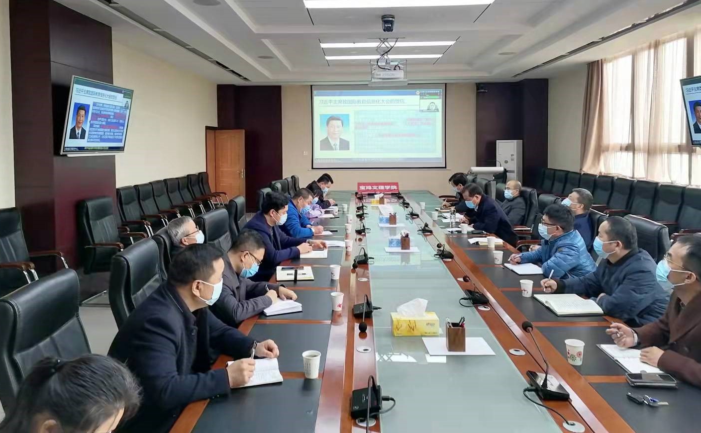 10月22日下午,陕西省委教育工委、省教育厅在省教育厅机关二楼大数据中心组织召开全省2021年度高等学校智慧校园示范交流视频会,会议由省教育厅教育信息化处处长李享阳主持。副校长杨子元以及学校信息化建设小组成员、相关部门负责人在高新校区图书馆801会议室参加视频会议。