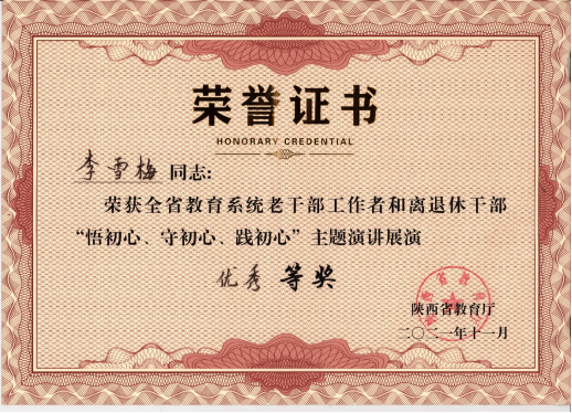 11月30日,全省教育系统老干部工作者和离退休干部“悟初心、守初心、践初心”主题演讲展演活动在省教育厅办公楼第一会议室举行。来自全省高校的32名选手进行了精彩的演讲展演,万象城退休教职工李雪梅参加了活动并荣获优秀奖。
