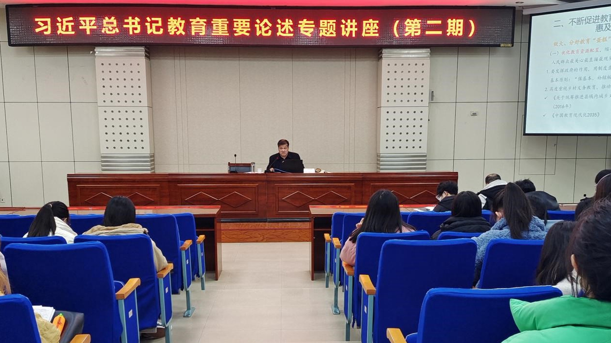 12月2日晚,副校长王富平在木铎厅以《增强人民的教育获得感——坚持以人民为中心发展教育》为题,为全校257名2021级教育类研究生讲了一堂生动的主题思政课。