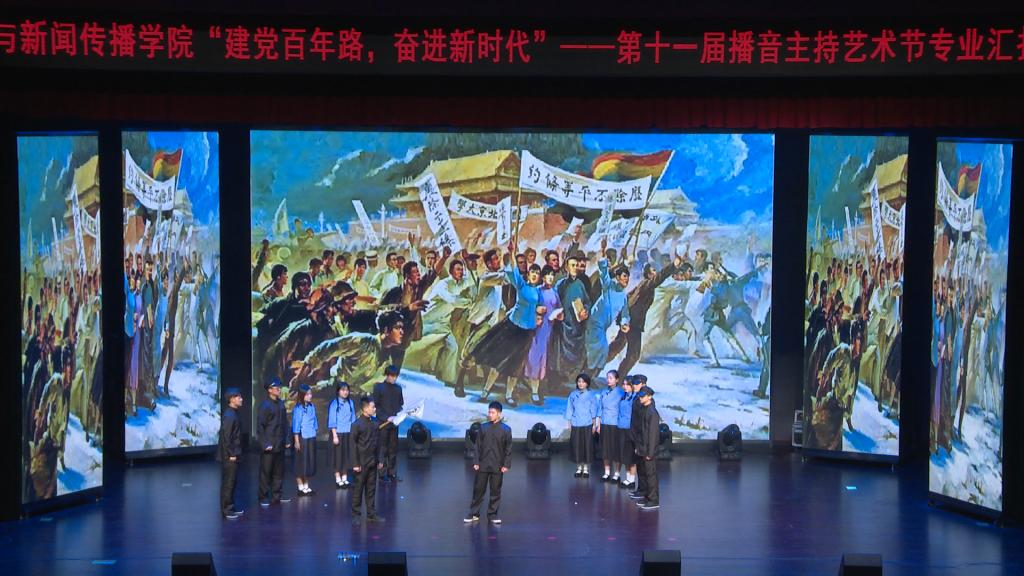汇报演出是持续深化党史学习教育,强化青年思想政治引领,培养广大青年爱党、爱国、爱社会主义的情感, 真正将立德树人落到实处,紧密结合专业特点开展的教学活动,是播音与主持专业人才培养质量的检验。