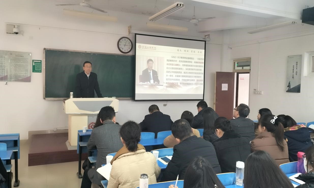 近日,校长郭霄鹏在立心楼302教室为教育学院师生讲授《以六中全会精神为指引,推动学校事业高质量发展》专题党课。教育学院师生党员、人事处学科建设与发展规划处联合党支部党员参加了学习。