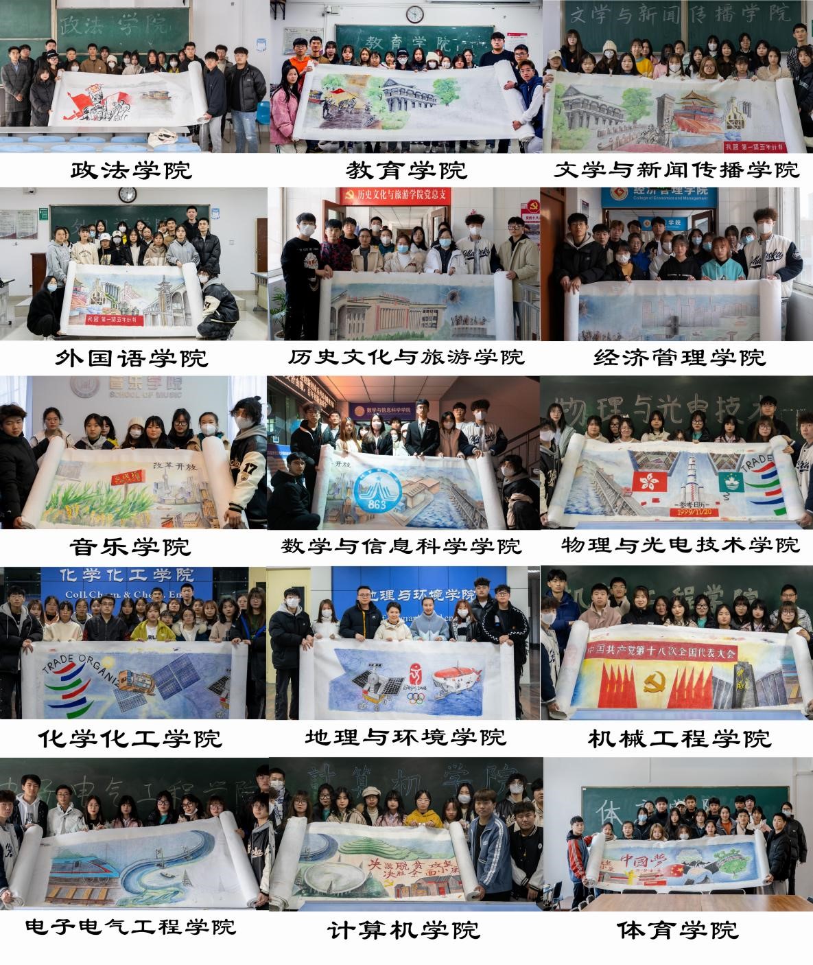 “赓续红色血脉绘就两个百年”长卷绘制活动是第五届“明理杯”科技学术节的一项校级活动。长卷接龙绘画作品由全校16个学院300余名师生,经过25天150多个小时的创作绘制而成,生动再现了中国共产党带领中国人民筚路蓝缕、披荆斩棘、砥砺前行的百年辉煌历程,充分体现了美术作品以美育人、以美化人的独特作用,让师生通过画卷铭记党的光辉历史,凝聚起全面建设社会主义现代化国家的磅礴力量,坚定了广大青年学子实现中华民族伟大复兴中国梦的信心。