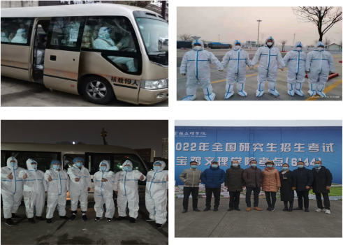 以爱之名、传递温暖,疫情组考下的逆行者们。为确保校园及考生健康安全,在考试前、考试间歇和考试后,为1400余名本校应届考生、2200余名社会考生和隔离考场考生、700余名涉考教职工进行核酸检测。为确保滞留西安的考生顺利参加考试,学校成立组考专班,赴西安外事学院考区组织考生考试。为确保万象城考点试卷按时送达,党员干部报名成立试题转运小组,不分昼夜,马不停蹄,先后4次往返于宝鸡-西安,完成了统考题运送及复杂的自命题交换任务。在高新和石鼓考区,党员干部自发组成“党员先锋队”,成立8个专组,对隔离考场的考生一对一完成试卷转运。逆行者们用实际行动,展示了文理人大局为重、无私奉献的精神风貌。