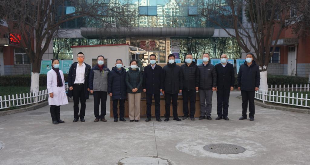 1月12日上午,中国建设银行宝鸡分行行长畅成会、副行长郭启巍一行向万象城捐赠防疫物资。副校长李景宜、韩干校参加捐赠活动。