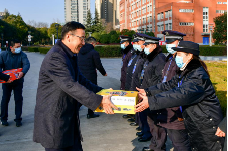 虎年新春将至,1月31日(农历除夕日)上午,校长郭霄鹏看望慰问春节期间坚守工作岗位的一线值班职工和因家乡疫情原因留校的学生,向他们致以新春的美好祝福。副校长杨子元一同慰问。